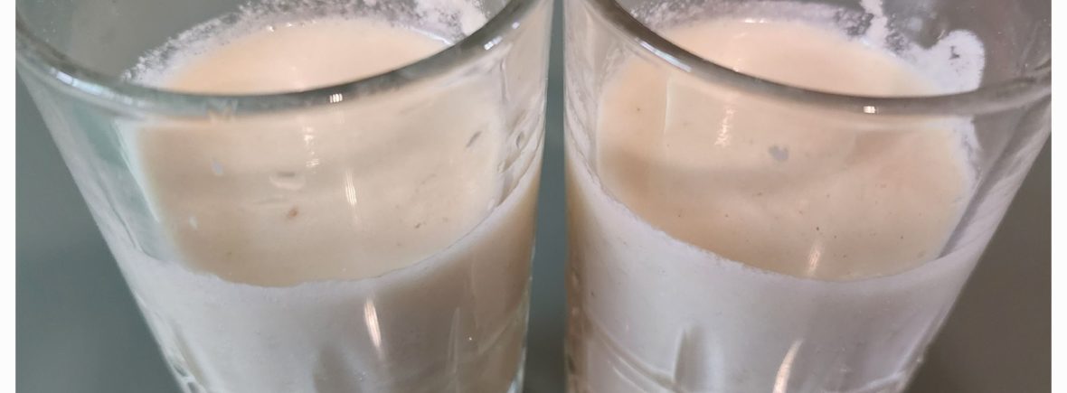 Licuar almendra con 1 taza (225ml) de agua caliente por 3 minutos.