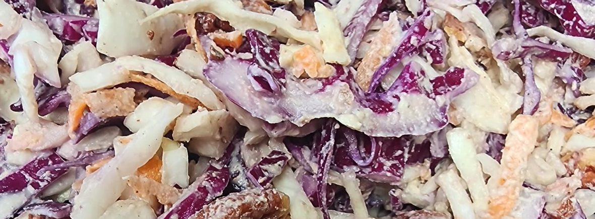 Mezclar col blanca, morada, zanahoria, jugo de limón, vinagre de manzana y pimienta negra.