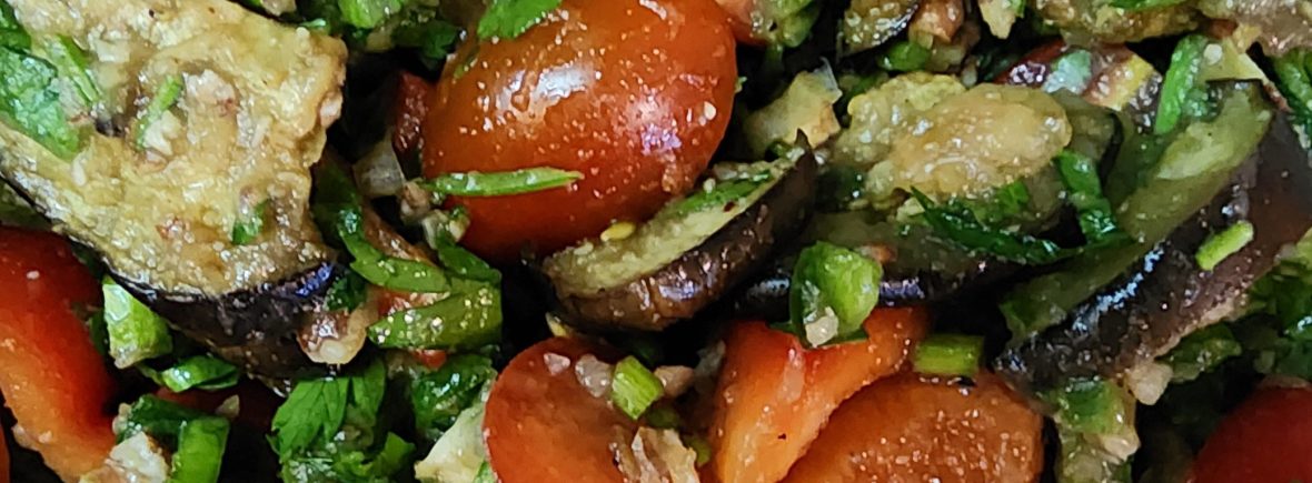1 pieza berenjena *firme sin magulladuras con caliz verde (remover extremos, lavar y rebanar; bañar con 1 cucharada aceite de oliva extra virgen, revolver)