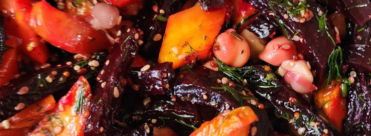 Agregar al betabel la mitad de todas las especias, sal, aceite, revolver y hornear por 10 minutos a 200oC.
