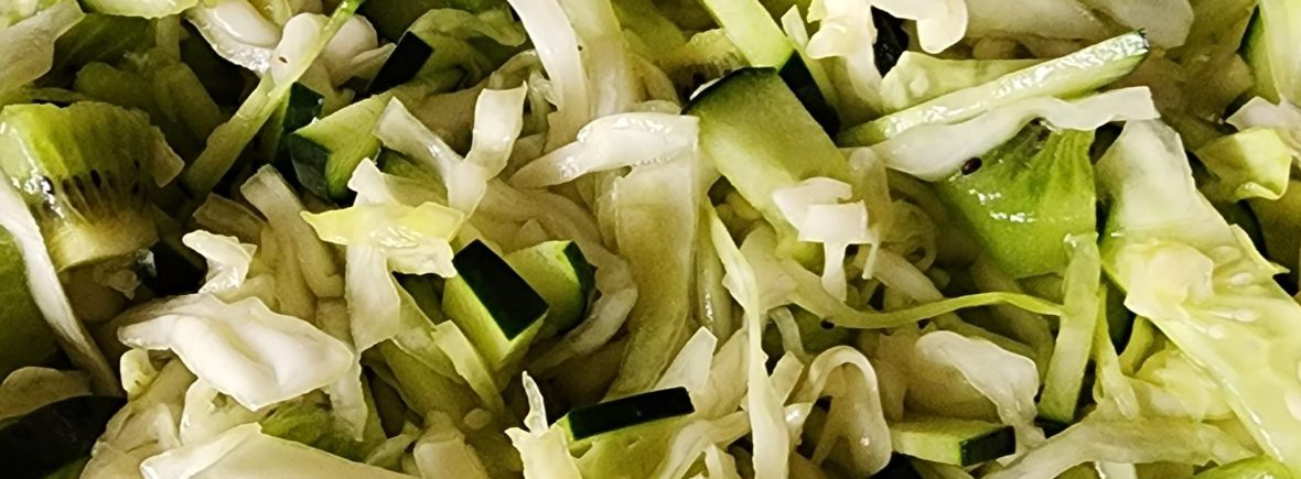 Mezclar col, pepino y kiwi.