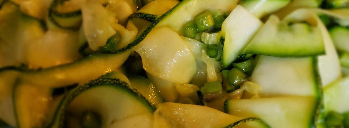 Agregar calabacitas y espárragos, revolver bien y servir.