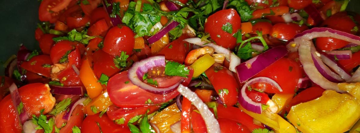 Mezclar todas las verduras previamente desinfectadas y rebanadas.