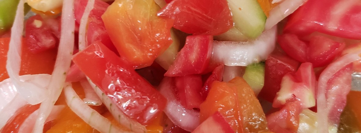 Mezclar todos los ingredientes con perejil o cilantro picado, aceite y vinagre.
