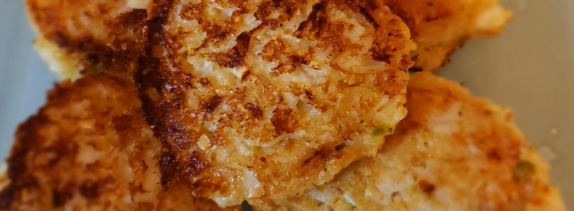 Freir las tortitas por 4-5 minutos de cada lado a fuego medio en una sartén u hornearlas en una charola engrasada con un poco de aceite de coco por 20-30 minutos a 180oC.