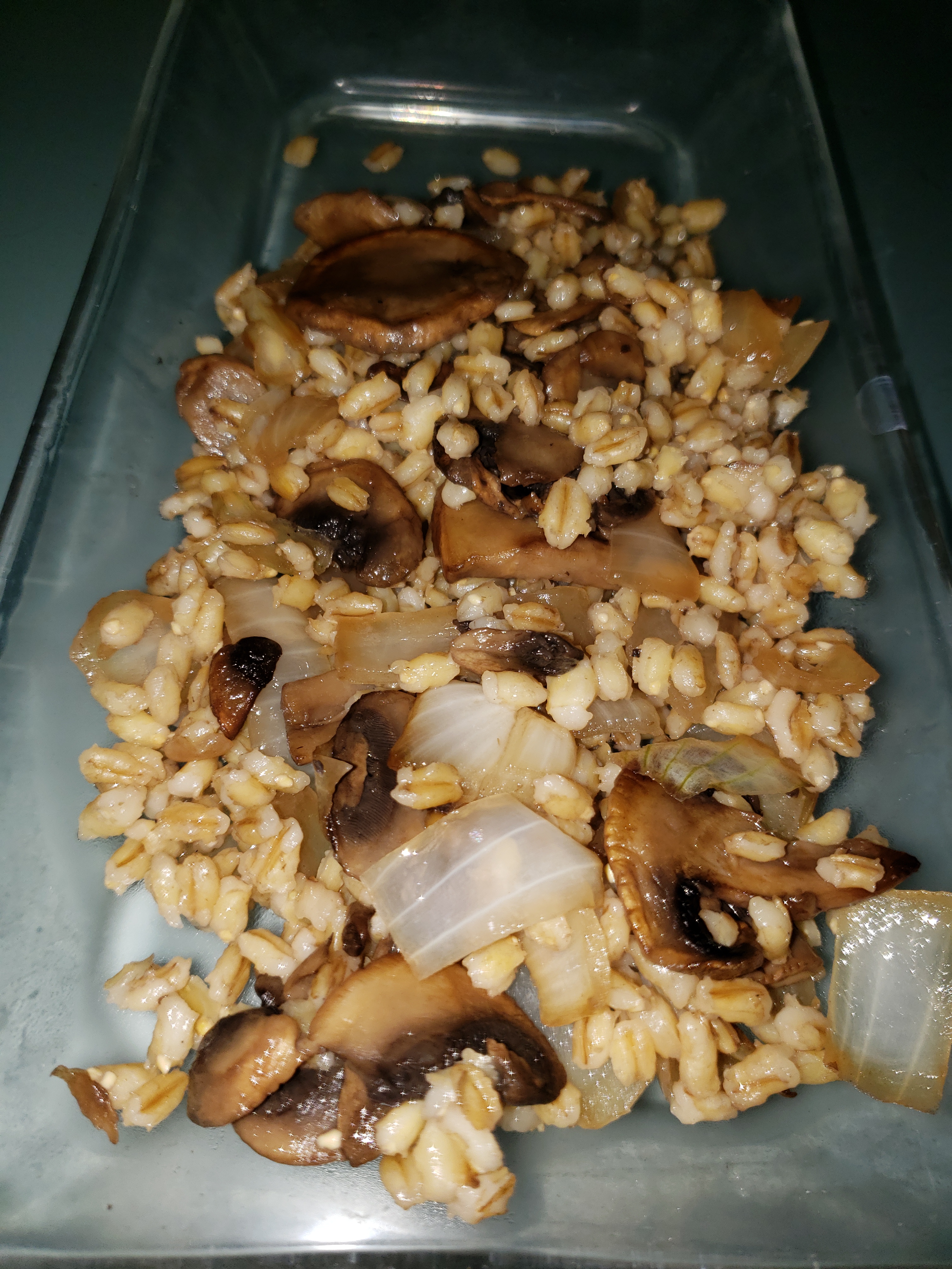 Agregar la cebada perla al sartén con los champiñones y sofreír por 5 minutos.