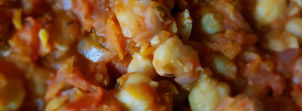 Incorporar garbanzos escurridos, pasta o pure de tomate, albahaca, orégano, sal, pimienta negra y pimienta cayena. Sofreír 3 minutos.