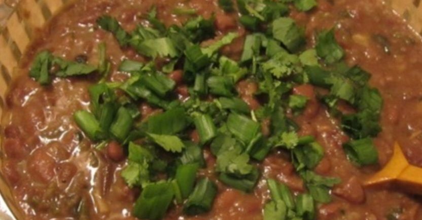 800g frijol (remojar en 2 litros de agua por 8-16 horas con 1-2 cambios de agua, enjuagar y escurrir, cocer por tiempo necesario en 3 litros de agua, machacar ligeramente)