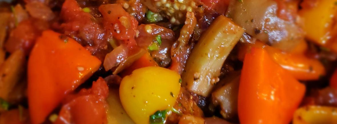 Agregar 1 cucharada de aceite y pimiento morrón en rodajas. Cocinar tapado por 10 minutos más a fuego bajo.