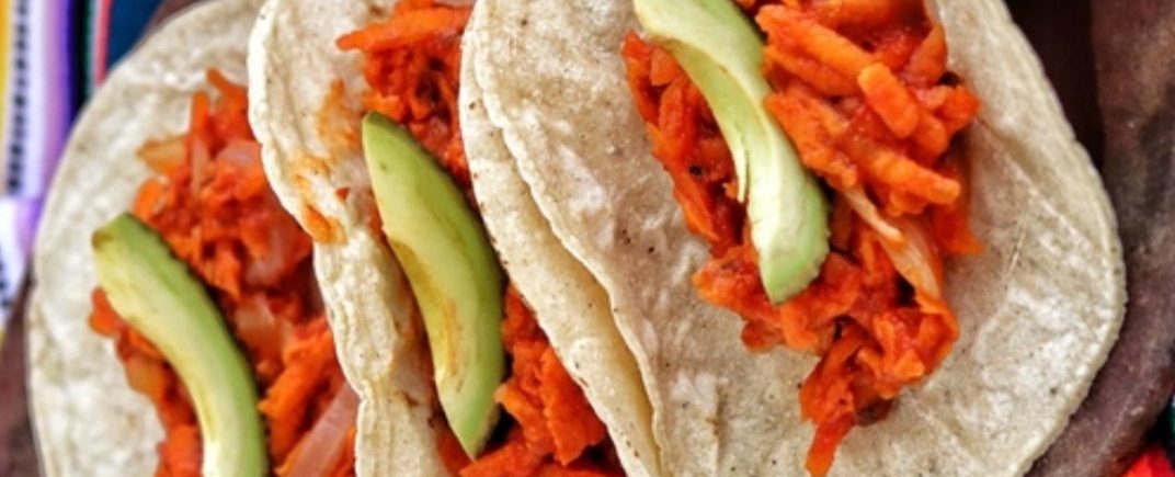 Servir en tortilla de maíz o tostada de maíz con aguacate y lechuga picada