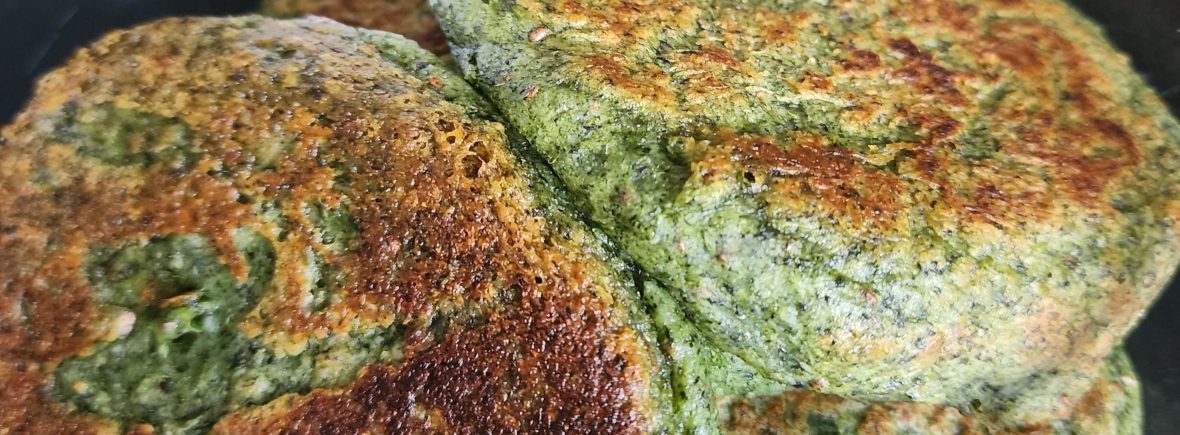 1/4kg espinaca (lavar, rebanar, freír en 1 cucharada de aceite orgánico de coco por 3 minutos a fuego medio o hasta que reduzca; agregar 1/4 cucharadita sal de mar, 1 pizca pimienta negra molida, 1 pizca de ajo molido, 1/2 taza agua caliente, mezclar, tapar y saltear por 5 minutos, escurrir)