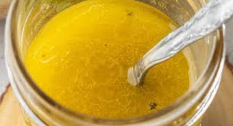 Con un batidor de globo pequeño mezclar jugo de limón, mostaza, sal y pimienta.