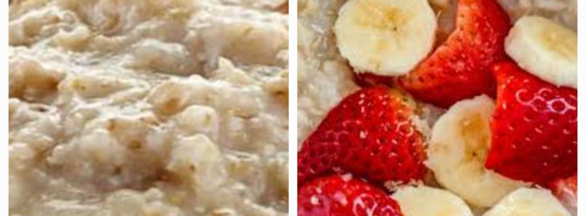 Cocer hojuelas de avena y fruta (excepto plátano y fresa) por 15 minutos en agua caliente a fuego lento. Revolver. Tapar y dejar reposar por 10 minutos. Retirar canela y revolver.