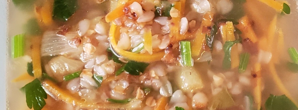Incorporar cebada perla o alforfón lavado y escurrido. Sofreír 1 minuto.
