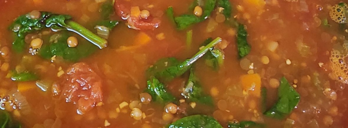 Incorporar agua caliente y lenteja, tapar y cocer la sopa por 30 minutos a fuego lento.