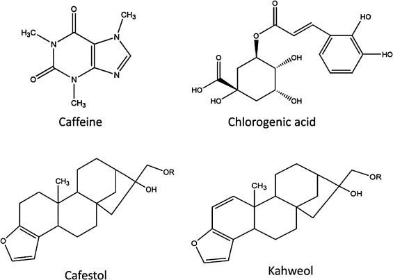 Cafestol y kahweol son los principales diterpenos elevadores de colesterol. El café se asocia a concentraciones elevadas de colesterol total y lipoproteínas de baja densidad.